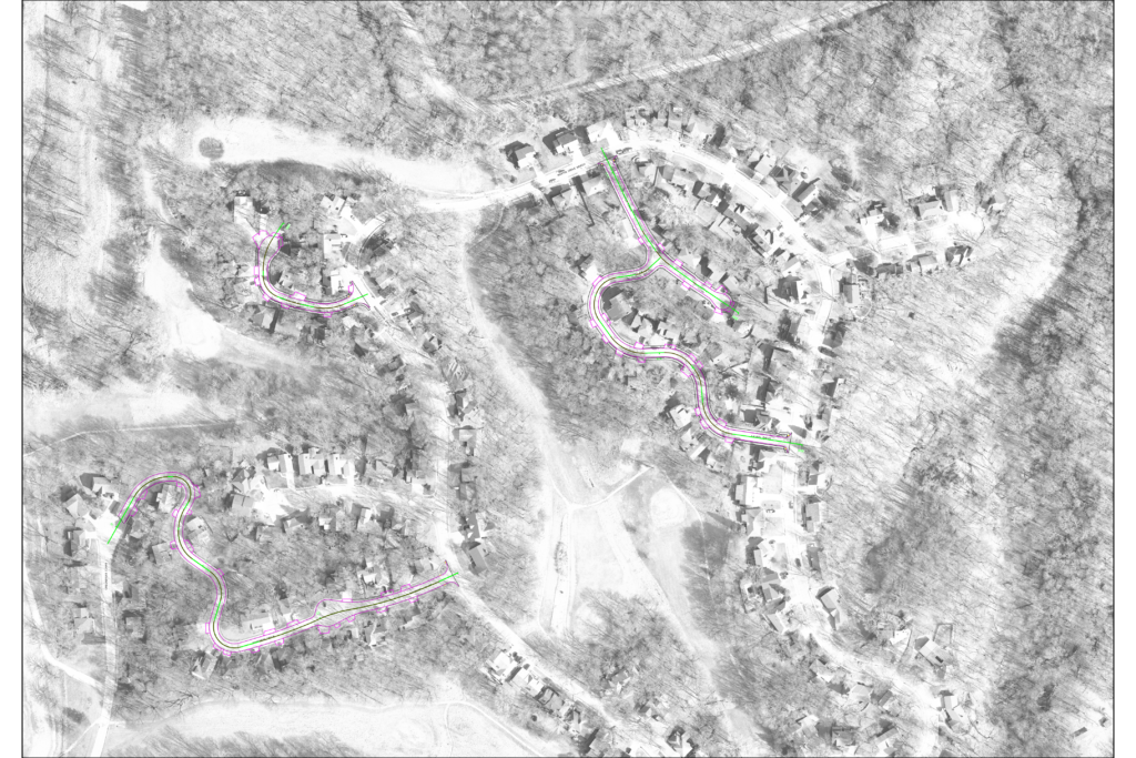 To support the project, the team is using advanced aerial photogrammetry to better understand existing conditions and guide the design process. High-resolution aerial imagery and survey data were collected and processed to create accurate orthomosaic maps and detailed 3D surface models of the project area.