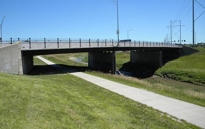 Schemmer was contracted to provide survey, traffic analysis, roadway design, bridge design and public involvement services for this bridge rehabilitation project on one of Omaha’s busiest corridors. The structure carries four lanes of traffic and two pedestrian sidewalks over the Papio Creek.