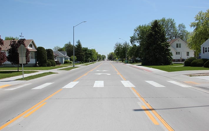Schemmer designed street improvements to a five-block stretch of Jackson Street from 8th Street to 13th Street in Lexington, Nebraska. The project included complete removal and replacement of the existing concrete pavement and widening the street from a varying width of 30-36 feet to a consistent width of 40 feet. The existing on-street parking was removed from the project corridor and the street was striped as a two-lane street with a common left turn lane. The entire corridor was lined with single-family homes along with a church and school. The project included storm sewer design, replacement of a six-inch watermain, street lighting, a traffic study and acquisition of additional right-of-way from two properties along the corridor. It was funded with federal transportation funds administered through the Nebraska Department of Roads.