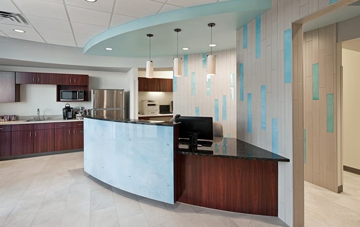 The 1,875 SF Concierge Clinic is located within an existing commercial structure. Functions include three large interview/exam rooms with connecting restrooms, two interview/consultation rooms, a lab with EKG, two offices and a kitchenette for clients. Schemmer provided full architectural/engineering services including interior finishes, arranging for furniture vendor assistance and construction administration services.